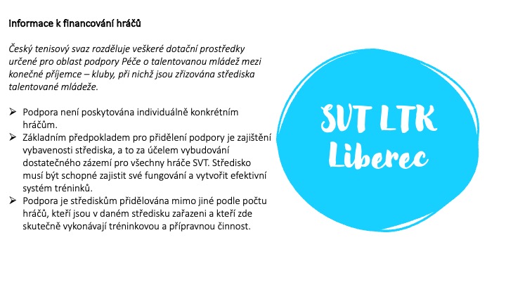• Středisko vrcholového tenisu od 15 do 18 let